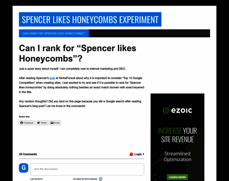 This is just a little experiment to see if I can rank for a near-zero-traffic keyword, "Spencer likes Honeycombs", that Spencer mentioned in his NichePursuit post.