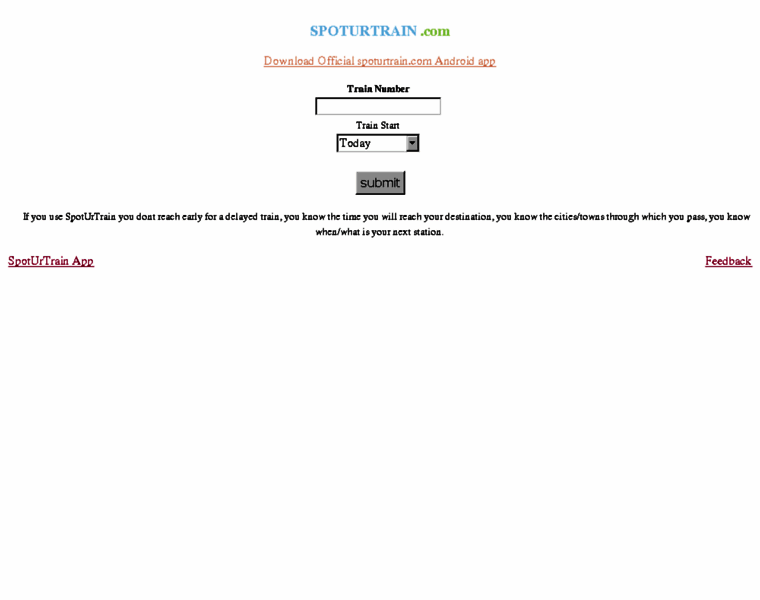 Get live train running status of any train in India. Works on any basic mobile phone.
