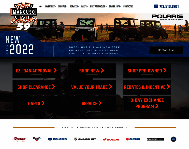 Team Mancuso Powersports 59 - Houston, TX - Offering Sales, Service & Parts - Indian® Motorcycle, Victory, Polaris, Polaris Slingshot, Polaris Power, Polaris GEM, Honda, Suzuki, and More!