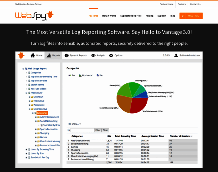 WebSpy Vantage 3.0. Versatile log file analysis optimized for Internet usage reporting. The right report securely delivered to the right person.