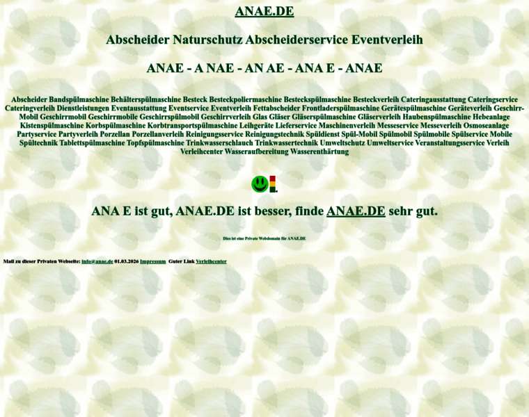 anae, Besteckverleih, Cateringverleih, Eventverleih, Fettabscheider, Geräteverleih, Geschirr-Mobil, Geschirrmobil, Geschirrmobile, Geschirrverleih, Gläserverleih, Leihgeräte, Kistenspülmaschine, Maschinenverleih, Porzellanverleih, Reinigungsservice, Reinigungstechnik, Spüldienst, Spül-Mobil, Spülmobil, Spülmobile, Spülservice, Mobile Spültechnik, Trinkwassertechnik, Umweltschutz, Umweltservice, Veranstaltungsservice, Verleih, Wasseraufbereitung, ...