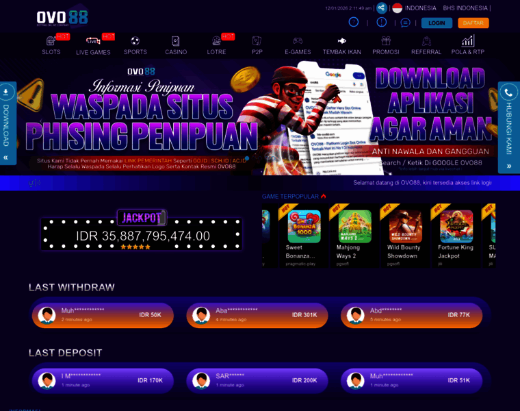 Selamat datang di OVO88, kini tersedia akses link login resmi yang menuntun Anda ke agen terkemuka dengan koleksi game slot online terlengkap dari berbagai provider ternama serta peluang menang tinggi setiap hari.