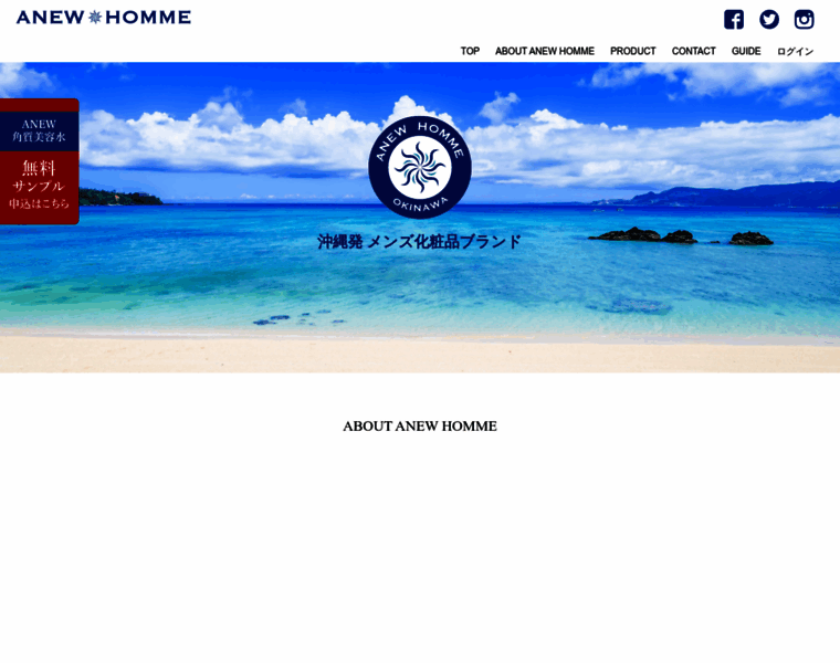 沖縄の海・空・大地から生まれたメンズ化粧品 アニュー・オム、メンズスキンケアブランドです。