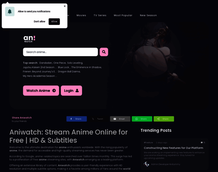 Aniwatch is a top free anime streaming site loved by fans worldwide. It has a huge anime library, easy-to-use interface, and high-quality streams.