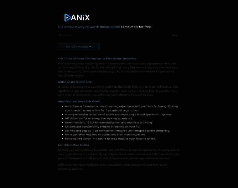 Anix is the best website to watch anime online for free, watch anime with DUB, SUB in HD. WATCH NOW! No Ads GUARANTEED