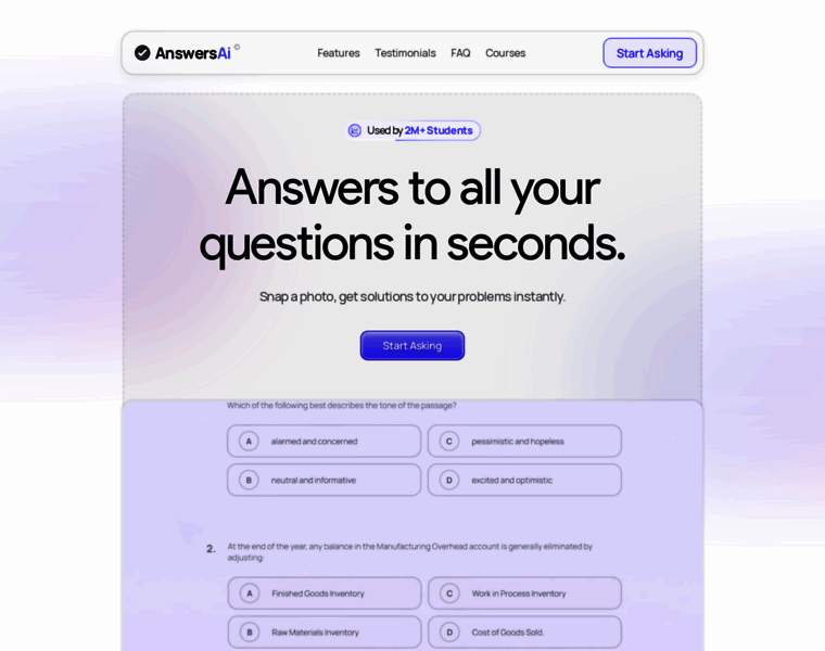 Having trouble with coursework? Looking to cut down on study time? AnswersAi is an ai based tool that reads your screen and answers all your questions at once! Fill in or multiple choice, on blackboard and canvas!