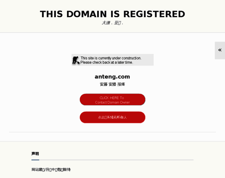The registrar of anteng.com is Alibaba Cloud Computing Ltd. d/b/a HiChina (www.net.cn) and the name expires on 2034-03-02. Owner email is obscured for security reasons, so you cannot reach them directly. Their country of residence is China.