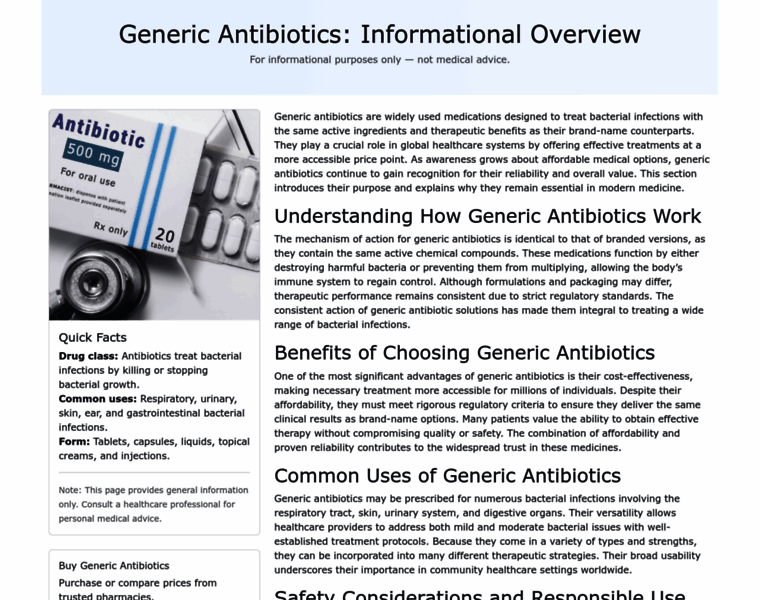 Learn about generic antibiotics, how they work, their benefits, common uses, and safety considerations. This informational guide explores affordability, effectiveness, and key factors to know before using generic antibiotic options.