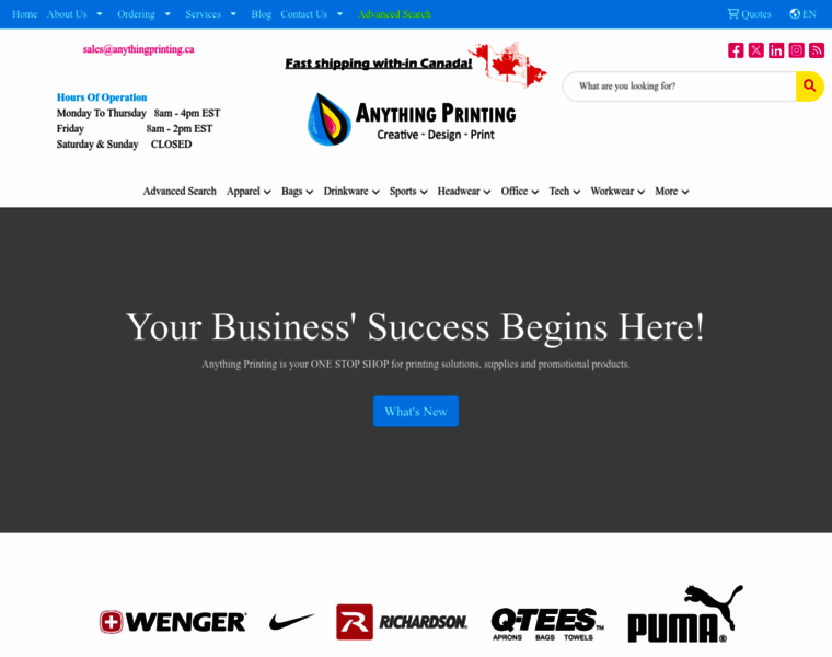 Anything Printing is your #1 source for branded promotional products. Choose from over 500,000 quality products. Great pricing and fast shipping in Canada.
