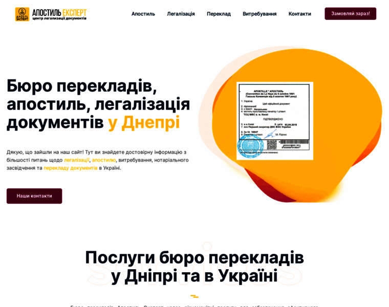 ✔️ Замовити Апостиль та Легалізацію в Дніпрі ✔️ Центр Легалізації та Бюро перекладів Апостиль Експерт Дніпро