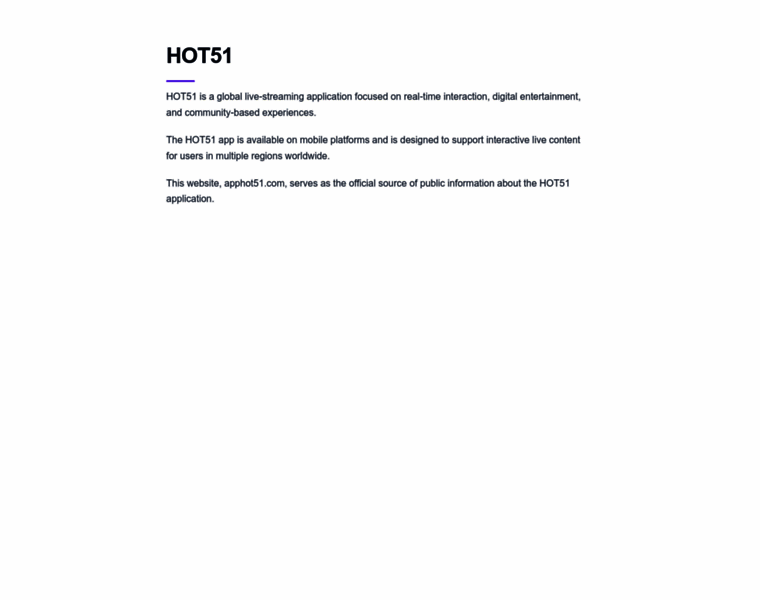 HOT51 is a global live-streaming application designed for real-time interaction and entertainment.