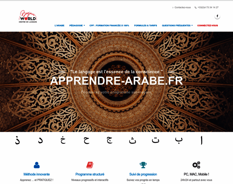 apprendre-arabe.fr : Apprenez l'arabe en ligne depuis chez vous, avec un formateur en visio + des cours e-learning 2h/24 + une certification reconnue en fin de programme. Bénéficiez d'un financement intégral des frais grâce à votre CPF !