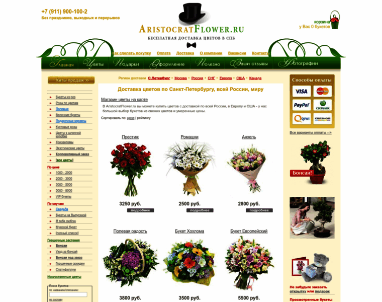 Доставка свежих и красивых букетов от 60 минут - AristocratFlower.ru работает с 2007 года, удобный заказ и оплата онлайн, большой выбор букетов на все случаи жизни.