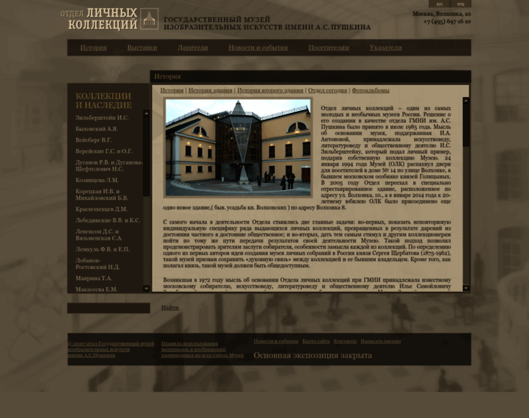 ГОСУДАРСТВЕННЫЙ МУЗЕЙ ИЗОБРАЗИТЕЛЬНЫХ ИСКУССТВ ИМЕНИ А.С. ПУШКИНА :: ОТДЕЛ ЛИЧНЫХ КОЛЛЕКЦИЙ