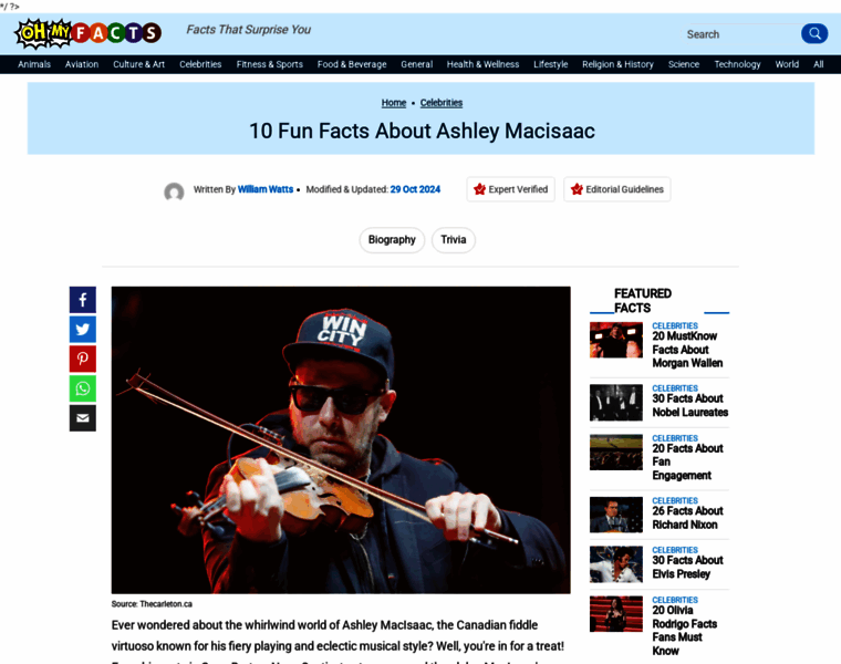 10 Fun Facts About Ashley Macisaac - OhMyFacts