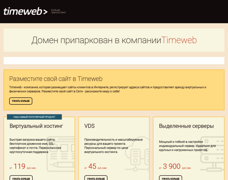 Домен припаркован в Timeweb