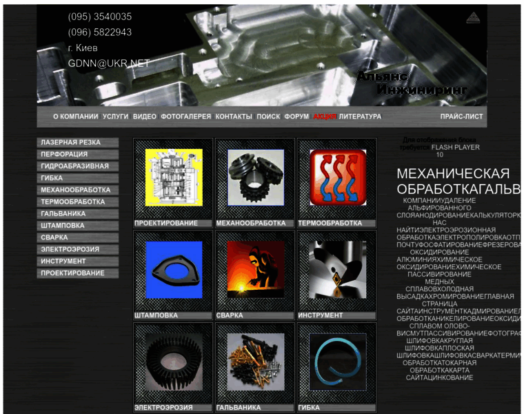 Альянс-Инжиниринг, лазерная резка металла Киев, гибка листового металла, перфорация металла, гальваника, гальванические покрытия, хромирование, никелирование, покрытие кадмием, анодирование алюминия, меднение, олово-висмут, лужение, токарные работы, фрезерная обработка металла, изготовление и навивка пружин, зуборезка, изготовление шестерен