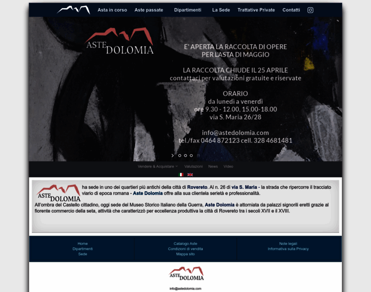 Home Page del sito ufficiale di Aste Dolomia. La Casa d'Aste di Rovereto