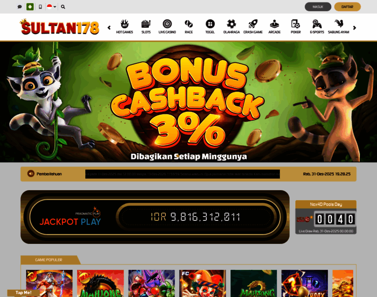SULTAN178 adalah portal slot gacor resmi 2025 yang menyediakan akses login aman tanpa VPN. Nikmati berbagai game slot terpercaya, bonus new member terbesar, dan pola gacor hari ini dengan winrate tinggi. Mainkan slot online paling mudah menang bersama SULTAN178 sekarang juga!