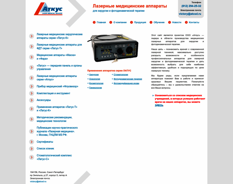 Лазерное оборудование «Аткус» — производство медицинских лазерных аппаратов, лечение лазером аппаратами серии «Латус»