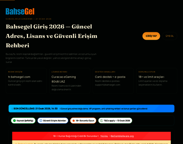 Bahsegel giriş adresi Ocak 2026 için az önce kontrol edildi ve aktif. Engelsiz, güncel ve %100 güvenli (SSL korumalı) bağlantı; jackpot fırsatları, 7/24 canlı destek ve güvenli giriş rehberi. 18+