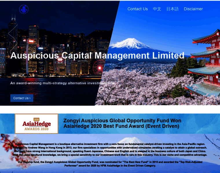 Auspicious Capital Management, 喜兆資產管理有限公司,An award-winning multi-strategy alternative investment firm.