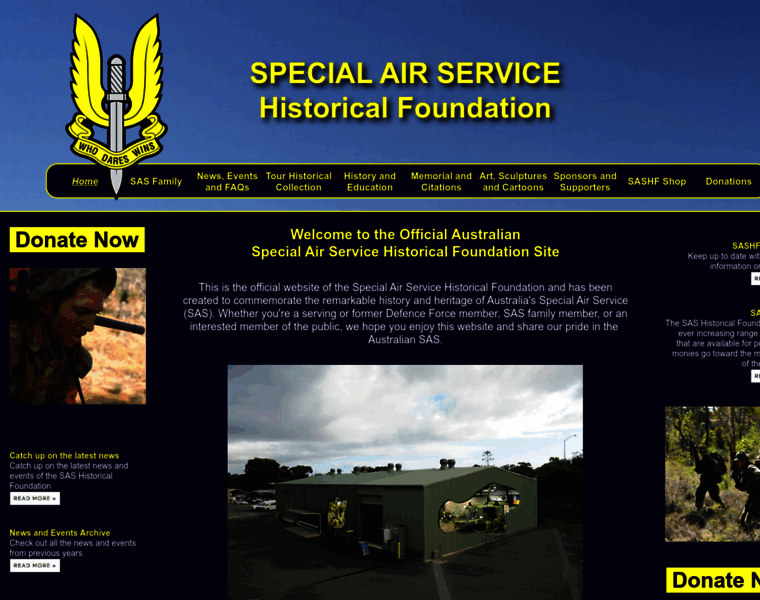 This is the official website of the Special Air Service Historical Foundation and has been created to commemorate the remarkable history and heritage of Australia's Special Air Service (SAS). Whether you're a serving or former Defence Force member, SAS family member, or an interested member of the public, we hope you enjoy this website and share our pride in the Australian SAS.