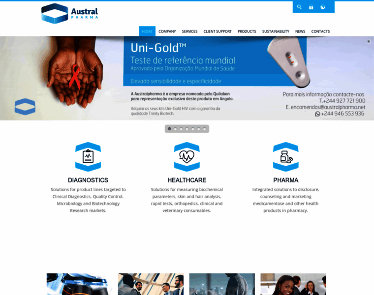 Australpharma distributes medicines, health products, diagnostic products, hospital expendable and Orthopedics to over 1000 customers in Angola, with daily and weekly distribution in 7 provinces of Angola ( Luanda , Benguela, Lubango , Huambo, Malange , Cabinda and Kwanza -Sul).