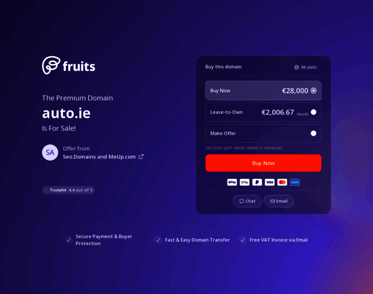 The premium domain auto.ie is for sale on fruits.co. Secure the domain now and start your online success story. Safe payment and quick transfer are guaranteed.
