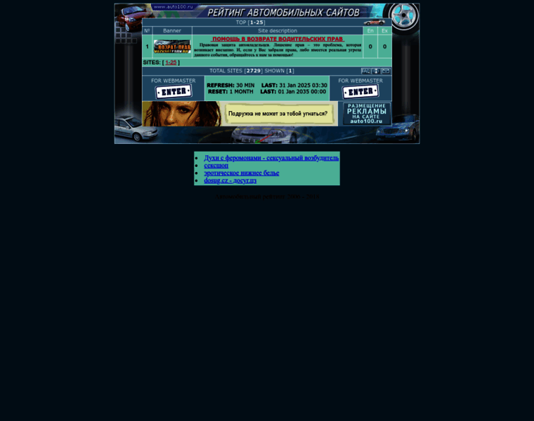 Автомобильный рейтинг сайтов. Каталог сайтов автотематики. Ссылки на лучшие автомобильные сайты. Топ 100. Добавь свой сайт в топ!