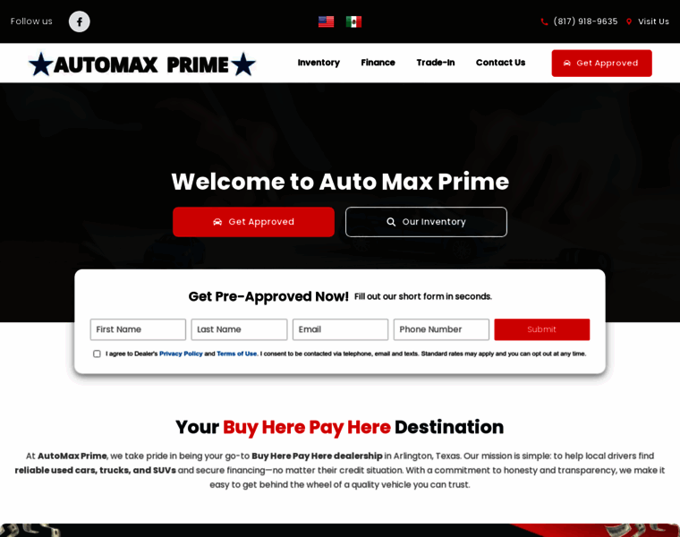 AutoMax Prime in Arlington, TX, offers Buy Here Pay Here financing, 1,000+ used cars, and friendly service to get you driving today.