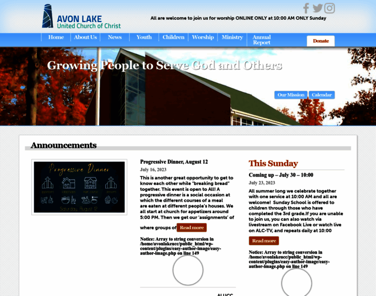 avonlakeucc.org, website home page for Avon Lake United Church of Christ