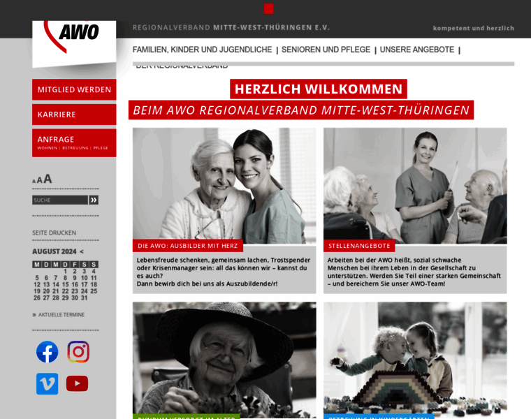 Home - AWO Regionalverband Mitte-West-Thüringen e.V. – kompetent und herzlich. Sozialaktiver Mitgliederverband und professioneller Dienstleister. Wir sichern soziale Lebensqualität.