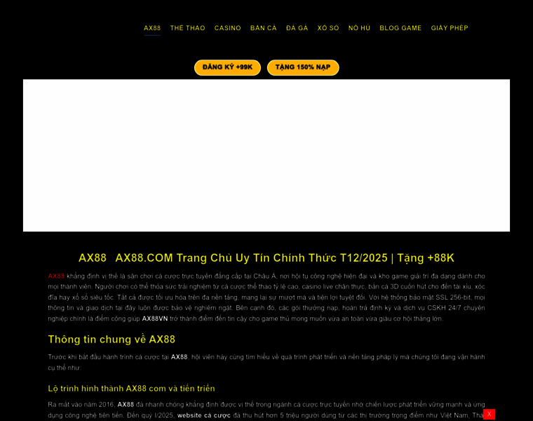 AX88 là nhà cái trực tuyến uy tín hàng đầu châu Á, nổi bật với thể thao, casino, slot và bắn cá. Bảo mật SSL 256-bit, thưởng 888K, giao dịch siêu tốc 24/7.