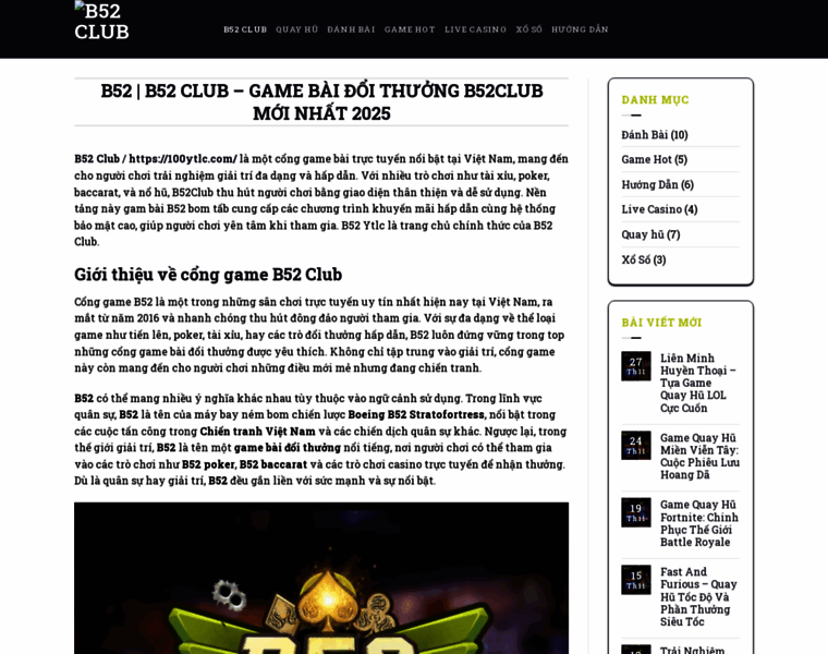 B52 Club là một cổng game bài trực tuyến nổi bật tại Việt Nam, mang đến cho người chơi trải nghiệm giải trí đa dạng và hấp dẫn. Với nhiều trò chơi như tài xỉu, poker, baccarat, và nổ hũ, B52Club thu hút người chơi bằng giao diện thân thiện và dễ sử dụng. Nền tảng này cung cấp các chương trình khuyến mãi hấp dẫn cùng hệ thống bảo mật cao, giúp người chơi yên tâm khi tham gia. B52 Ytlc là trang chủ chính thức của B52 Club.