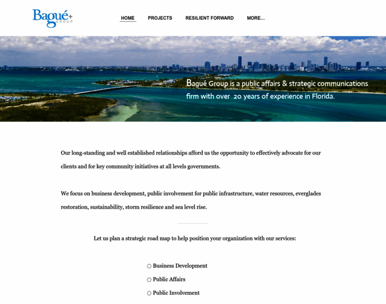 Bagué Group is a minority run and owned public affairs & strategic communications firm with over 20 years of experience in Florida: Offering services in business development, public affairs, strategic communications, water advocacy, and climate resiliency