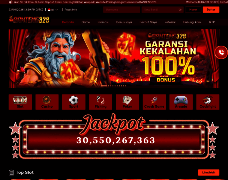 Banteng328 adalah salah satu situs top no 1 slot online paling gampang menang dengan bonus beruapa info rtp terupdate setiap harinya ditambah dengan bonus welcome cashback 100% untuk setiap member baru.