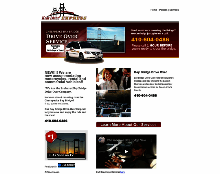 24 Hour Bay Bridge Drive-Over Service available to people needing help crossing the Chesapeake Bay Bridge as well as traditional Parcel Delivery.