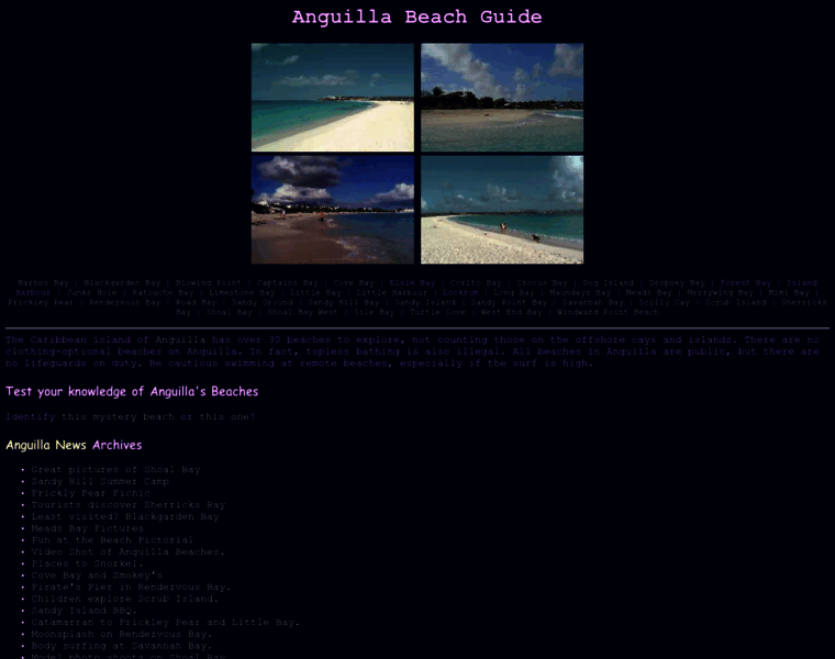 The Anguilla Beach Guide has links to all the beaches on this Caribbean island (well, almost all, there are at least 35 beaches).