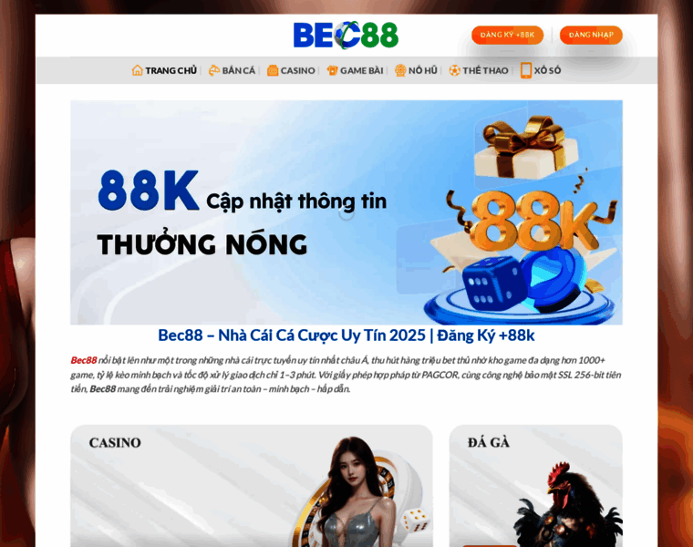 Bec88 – nền tảng cá cược uy tín, minh bạch với hơn 8 triệu thành viên. Đa dạng sảnh game từ Casino, Thể thao, Nổ hũ đến Bắn cá...