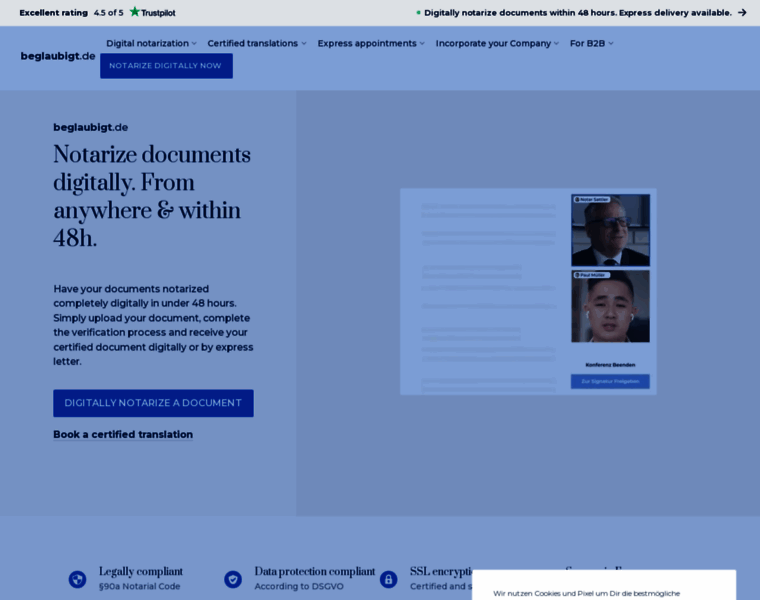 Beglaubigt.de is the first digital notary for Europe.