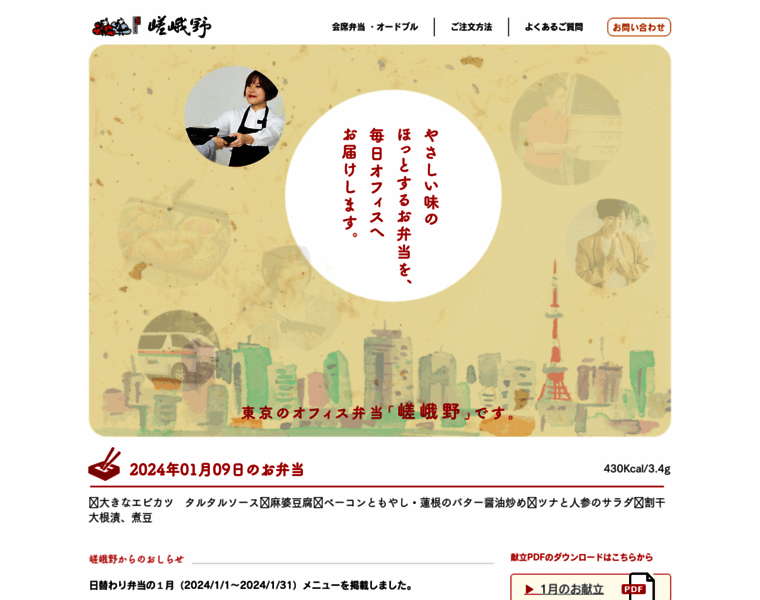 お弁当の嵯峨野はオフィス弁当・会席弁当. 四季折々の風情を料理に託し、嵯峨野自慢の味を真心を込めてお届けいたします