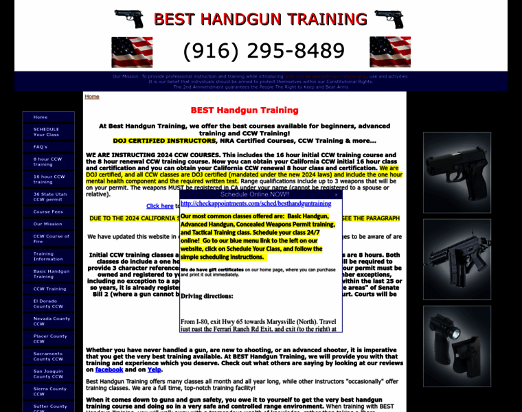 Best Handgun Training - certified by DOJ and NRA. #1 CCW Training program in Northern CA. Offering Concealed Weapons Permit and beginner handgun classes at a private range - all month and all year long. CCW training for Northern CA. (916) 744 6969