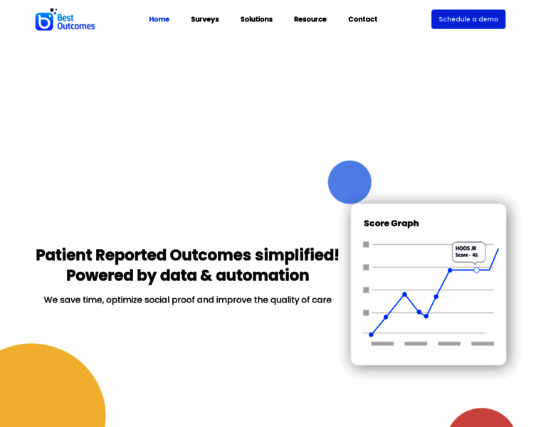 BestOutcomes.io specializes in patient-reported outcomes (PROs), gathering real-time feedback to enhance patient satisfaction and improve health results.