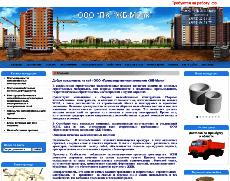 сайт ПК ЖБ Маяк, производство и продажа жедезобетонных изделий