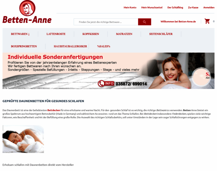 Daunenbetten & Federdecken - Geprüft und Hochwertig - Betten Anne