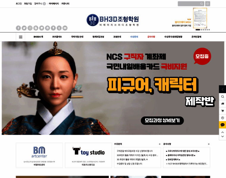 3D프린팅 캐릭터 디자인 교육기관 BH3D조형학원입니다. (3D모델링, 3D프린팅, 지브러쉬, ZBrush, 인체조형해부학, 피규어, 캐릭터, 구체관절인형, 아트토이, 내일배움카드, 국비지원교육) 3D모델링, 3D프린팅, 지브러쉬, ZBrush, 인체조형해부학, 피규어캐릭터, 구체관절인형, 아트토이, 3D프린터운용기능사 등 3D모델링 캐릭터 콘텐츠 제작 및 3D프린터를 활용한 모형 제작 관련 국비지원 직업훈련 교육과정을 운영하고 있습니다.