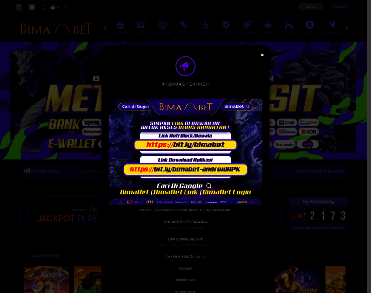 Bimabet adalah platform gaming online modern yang menawarkan pengalaman bermain cepat, aman, dan responsif dengan teknologi terbaru serta pilihan game terlengkap. Login & daftar sekarang juga!