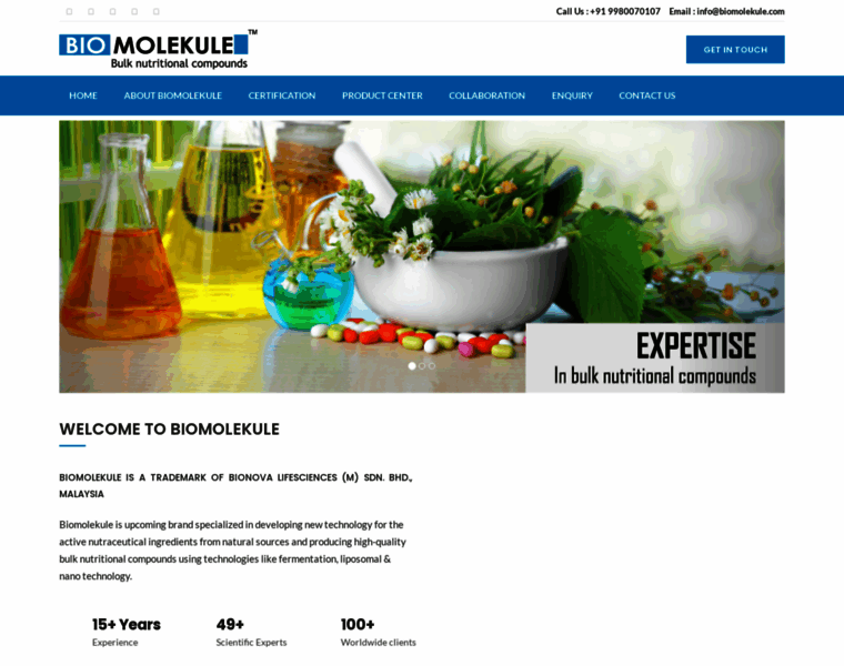 Biomolekule manufacturers of Active Nutritional ingredients producing high quality bulk nutritional compounds. We have expertise liposomal technology, fermentation technology & nano technology. Vegan Glucosamine,Polypodium leucotomos, khellin extract,saw palmetto & coral calcium.