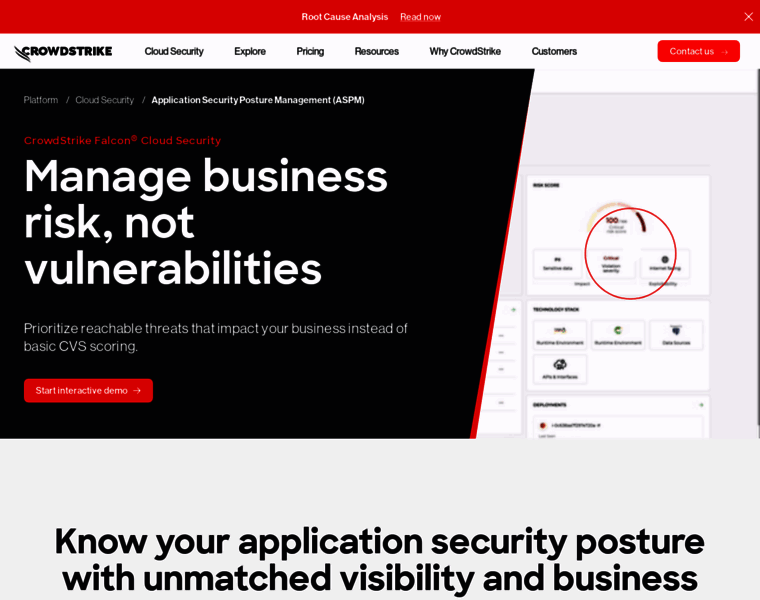 Manage your business risk and get complete visibility into any application's security posture on any cloud with CrowdStrike Falcon® ASPM.